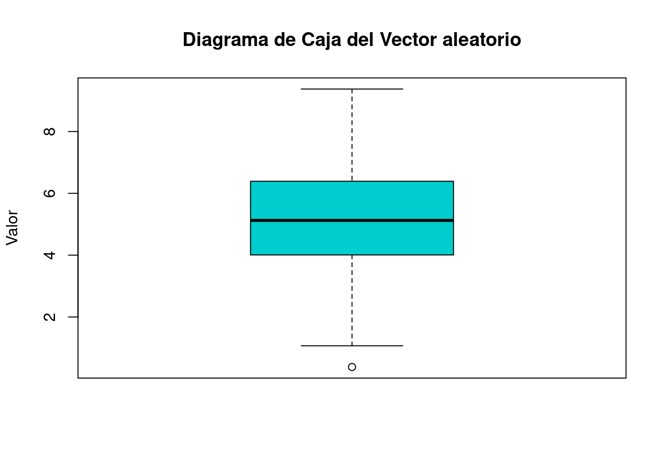 boxplot(vector,main="Diagrama de Caja del Vector aleatorio",ylab="Valor",col="cyan3")
